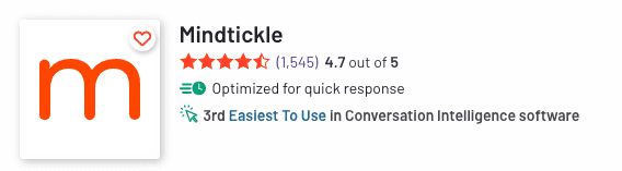 Mindtickle delivers the only single, integrated platform to build and implement an effective sales readiness strategy. Revenue leaders rely on the conversation intelligence functionality in the platform to surface insights that help their teams increase knowledge, internalize ideal sales behaviors, and quickly adapt to change. Mindtickle also offers revenue intelligence technology to provide deal and account health scores after analyzing all of the calls, emails, and meetings that took place. Then it serves reps up with content to send to customers and trainings that will help them win more deals.
