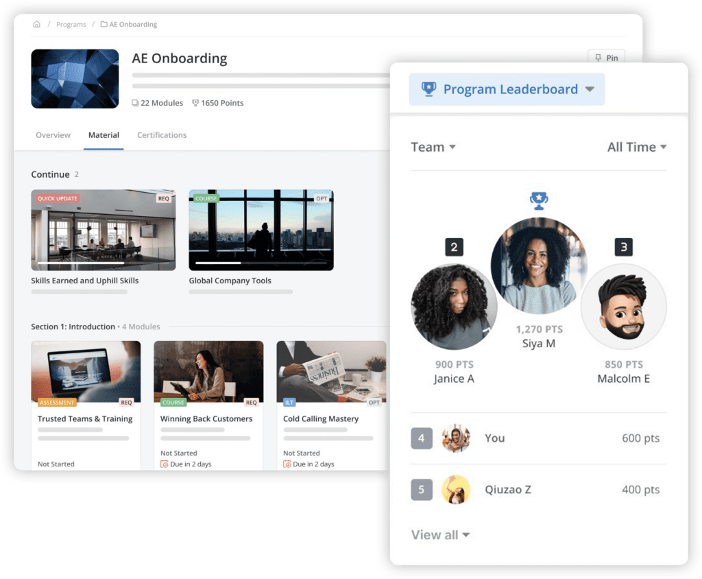Becoming certified in a topic or process is a motivating factor for many high-impact enablement programs. However, sales enablement leaders need to be able to scale and automate certification efforts easily. They need to be able to track seller performance on individual learning components in the program, award certificates using complex criteria, and manage recertifications as necessary.
