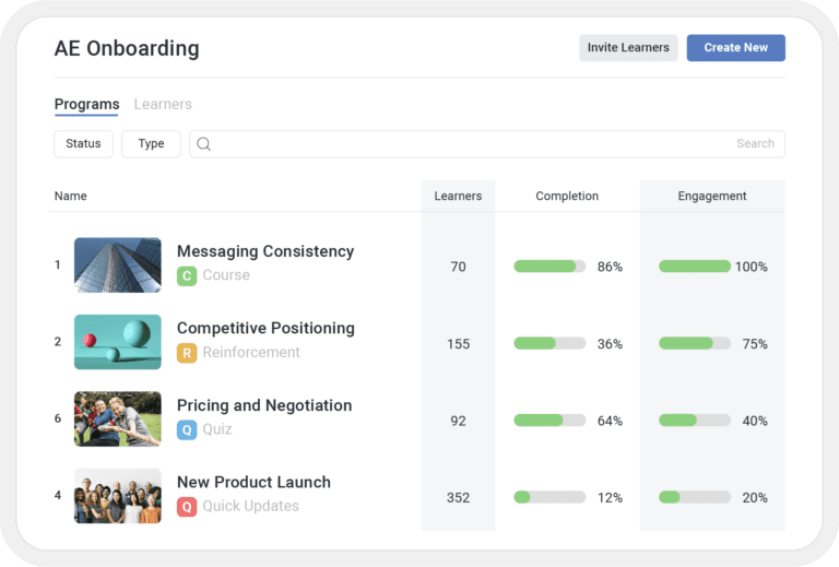 On the other hand, sales enablement aims to ensure every seller is ready to take on any deal that comes their way. Sales enablement teams collaborate with key teams including sales, marketing, and sales ops to identify the key skills and competencies a seller needs to be successful in the field. Then, they develop and deliver myriad initiatives – including onboarding, training, content, information, and coaching – that enable those sellers to develop the skills and competencies needed to close more deals.